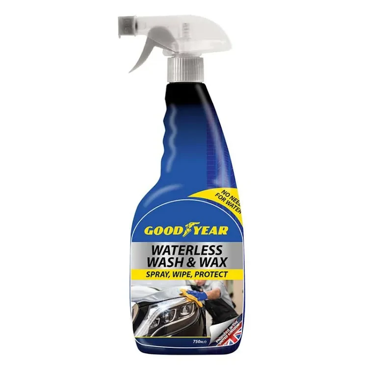 The Goodyear Waterless Wash & Wax is an all-in-one solution for motorists! Cleaning and protecting the car exterior, the Waterless Wash & Wax is simply used with a cloth; spray, wipe, job done! 750ml Spray, Wipe & Protect No Need for Water With no powder residue, the Waterless Wash & Wax is a non-abrasive, dirt-lifting formula that leaves a streak-free finish and protects against dust, grime and debris. No buckets, no hoses, no sponges, no mess!