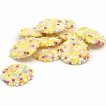Sugar, vegetable fat (palm), whey powder (from milk), wheat flour (with calcium, iron, niacin, thiamin), wheat starch, glucose syrup, emulsifier: rapeseed lecithin; natural flavourings, glazing agent: beeswax; natural colour: curcumin; colouring foods: beetroot juice concentrate, spirulina extract.