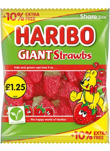 Glucose Syrup, Sugar, Starch, Acid: Citric Acid, Fruit and Plant Concentrates: Aronia, Blackcurrant, Elderberry, Grape, Lemon, Orange, Safflower, Spirulina, Caramelised Sugar Syrup, Sunflower Oil, Flavouring, Glazing Agent: Beeswax, Elderberry Extract