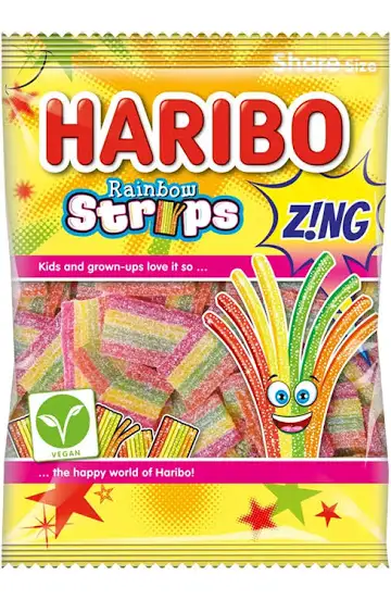 Sugar, Glucose Syrup, Starch, Humectant: Sorbitol Syrup, Wheat Flour, Water, Acids: Citric Acid, Malic Acid, Acidity Regulators: Tricalcium Citrate, Sodium Hydrogen Malate, Glazing Agent: Carnaubawax, Emulsifier: Mono and Di-Glycerides of Fatty Acids, Flavour, Fruit and Plant Concentrates: Blackcurrant, Elderberry, Aronia, Grape, Elderberry Extract, Colours: Curcumin, Copper Complexes of Chlorophyllins