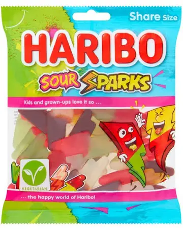 Glucose Syrup, Sugar, Starch, Acids: Citric Acid, Tartaric Acid, Malic Acid, Fruit and Plant Concentrates: Aronia, Blackcurrant, Elderberry, Grape, Lemon, Orange, Safflower, Spirulina, Caramelised Sugar Syrup, Sunflower Oil, Flavouring, Glazing Agent: Beeswax, Elderberry Extract