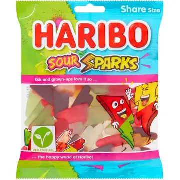 Glucose Syrup, Sugar, Starch, Acids: Citric Acid, Tartaric Acid, Malic Acid, Flavouring, Fruit and Plant Concentrates: Aronia, Blackcurrant, Elderberry, Grape, Lemon, Orange, Safflower, Spirulina, Caramelised Sugar Syrup, Glazing Agents: Beeswax, Carnauba Wax, Elderberry Extract.