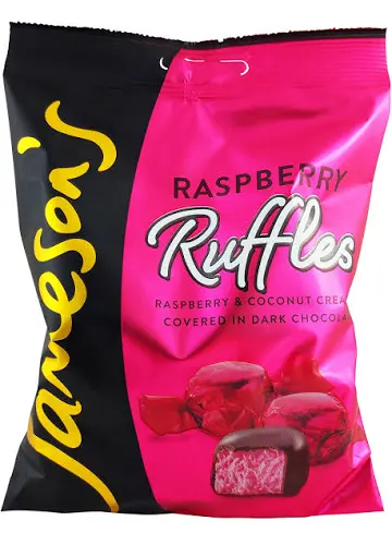 Sugar, Dark Chocolate (22%)[Sugar, Cocoa mass, Cocoa Butter, Fat Reduced Cocoa Powder, Emulsifier (Soya Lecithins)], Desiccated Coconut (19%), Glucose Syrup, Natural Colour (Beetroot Red), Flavourings, Invertase, Citric Acid.