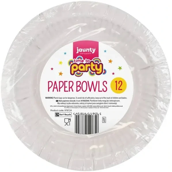 Jaunty Time To Party White Paper Bowls 12 Pack
