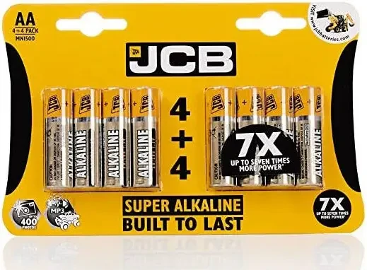 JCB Super alkaline AA batteries are ideal for high drain applications. They are especially suitable for the most popular portable electronic devices such as small torches, clocks, compact radios and music players as well as photographic equipment, pagers and certain remote controls.