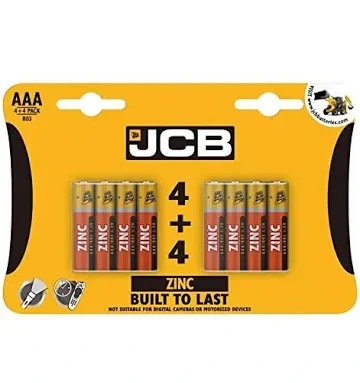 JCB Zinc R03/UMA AAA Batteries 4 + 4 Pack