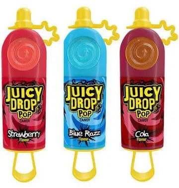 Get a kick of flavour with this Juicy Drop Pop. The double-sided candy gives you the choice to lick it or squeeze the flavouring into your mouth. Put the cap back on and stick the sucker back in to save the super sweet treat for later.