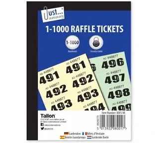 Just Stationery 1-1000 Numbered Cloakroom & Raffle Tickets