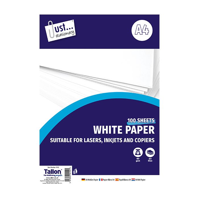 Discover the versatility of Just Stationery's A4 printing paper, ideal for both inkjet and laser printers. Each 100-sheet pack is crafted to provide a premium printing experience with high-quality white paper that consistently delivers crisp, clear results. The paper's 80 gsm weight ensures durability through multiple prints, while the classic white hue offers a clean, professional look for all your documents. Whether creating detailed drawings, printing presentations, or drafting reports, this A4 printer paper meets your needs with reliability. Its compatibility with a variety of print technologies makes it a staple for any office or home environment. The convenient size ensures a perfect fit for standard A4 printers, maintaining the integrity of your printouts without compromising on quality.
