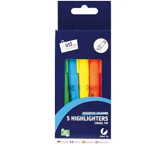 Just Stationery Assorted Bright Chisel Tip Highlighter Pens 5 Pack