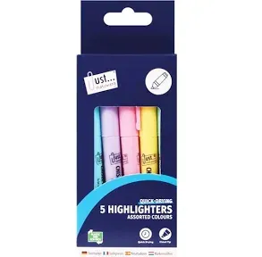 Just Stationery Assorted Pastel Chisel Tip Highlighter Pens 5 Pack