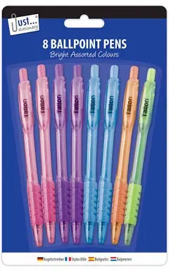 Just Stationery Assorted Pastel Colours Ballpoint Pens 8 Pack