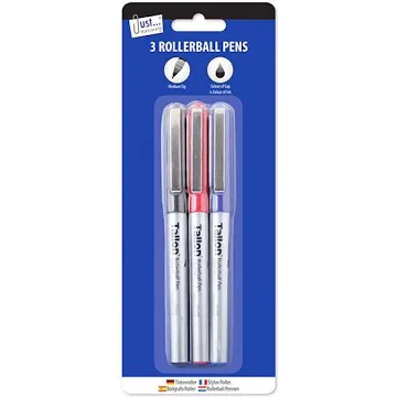 The Just Stationery 3 Roller Ball Pens pack offers a trio of high-performance pens for smooth, effortless writing. These pens feature a roller ball tip that delivers a consistent flow of ink, allowing for a seamless writing experience without skips or smudges. The ergonomic design ensures comfortable handling, making these pens suitable for extended writing sessions. Whether for office work, academic writing, or personal use, these roller ball pens provide precision and reliability.