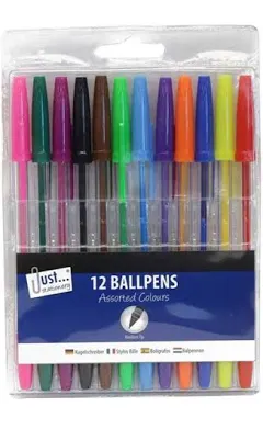 Just Stationery Assorted Colour Ink Ballpoint Pens - Pack of 12