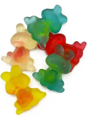 Glucose syrup, Sugar, Water, Pork Gelatine, Acids (Lactic, Malic, Citric), Maltodextrin, Flavourings, Fruit & Vegetable Concentrates (Apple, Spirulina, Black Carrot), Colour (Curcumin), Vegetable oil (Coconut), Glazing agent (Carnauba wax).