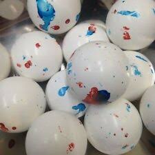 Dextrose, modified starch, flavourings, maltodextrin, anti-caking agent: magnesium stearate; colours: E120, E129, E133, E160e, E171; glazing agents: carnauba wax, shellac.