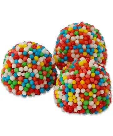 Glucose Syrup*, Sugar, Nonpareils [Sugar, Corn Starch*, Modified Corn Starch*, Glucose Syrup*, Stabiliser (Calcium Carbonate), Glazing Agent (Carnauba Wax), Anti-Caking Agent (Magnesium Silicate), Colours (E102, E129, E133, E171, E110)], Water, Beef Gelatine, Acid (Citric Acid), Flavouring, Acidity Regulator (E331), Colour (E110).