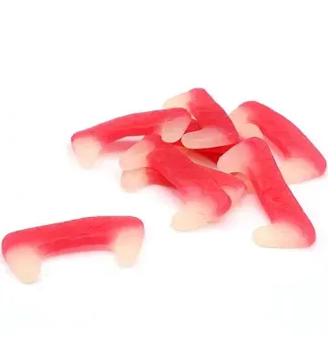 Sugar, glucose syrup, wheat starch, water, modified maize starch, modified potato starch, acids (lactic acid, malic acid, citric acid), vegetable concentrate (black carrot), flavouring, vegetable oil (coconut), glazing agent (carnauba wax).