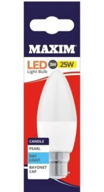 Maxim LEDBayonet Low EnergyCandle Light Bulb 3w/25w Pearl DayLight