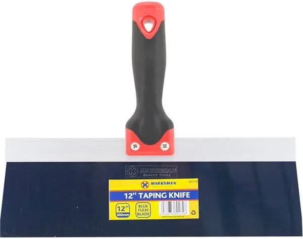 Ideal for spreading compound over screw and nail indents on dry wall and ceiling, the Tape Knife has a large, robust blue flexi blade. Blue Flexi Blade Ergonomic Hooked Handle Ideal for a range of decorating and plastering tasks, the Marksman Taping Knife can also be used for applying paper of fibreglass drywall tape to cover joints in plasterboard.