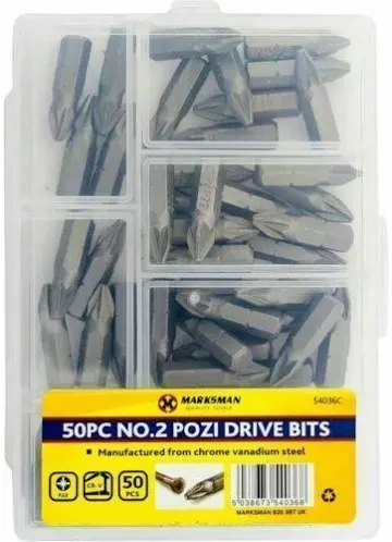 Marksman 50pc x PZ2 Pozi #2 No.2 25mm Screwdriver Drill Drive Driver Bit Set Power Tool.