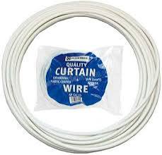 30 Meters White Curtain Wire Perfect for net curtains/ light weight curtains / voiles etc. Expanding PVC coated metal spring wire. Simply cut the wire to the length you need. The curtain cable is made of plastic coated steel, it makes the wire strong and durable, suitable for wood window or metal window.