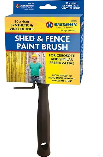 The brush includes a clip to hang the brush onto paint pot while not in use, helping to prevent drips between use. This shed and fence brush is specially designed and ideal for painting all exterior woodwork including fences and sheds.