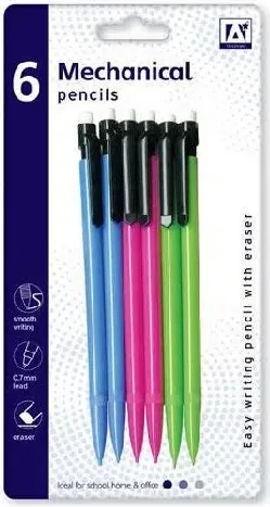 Ideal for school, home and office, the Mechanical Pencils are great for writing, sketching and drawing. They feature eraser toppers and 0.7mm lead.