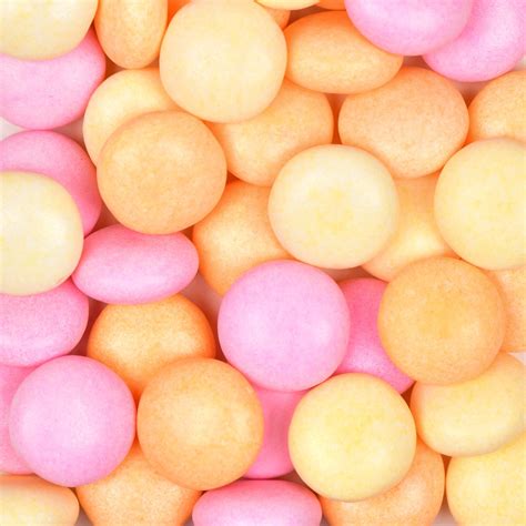 Sugar, Glucose Syrup, Fruit Juices from Concentrate (Strawberry, Orange, Lemon) (2%), Coconut Oil, Citric Acid, Starch, Cocoa Butter, Flavourings, Maltodextrin, Thickeners (Gellan Gum, Cellulose Gum, Gum Arabic), Emulsifier (E473), Glazing Agent (Carnauba Wax), Colours (E160a, E162)