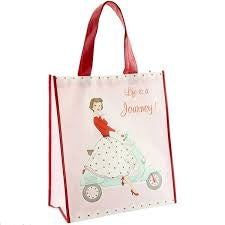 This artistic, stylish design is a strong, durable bag for carrying shopping and heavy items. Mrs Smith 'Life is a Journey' Design; 34cm X 18cm X 60cm