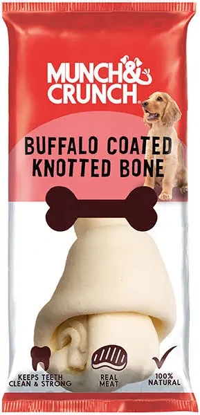Encouraging dogs to chew and gnaw, the Munch & Crunch Buffalo-Coated Bones are made with 100% natural ingredients and real meaty flavour. Satisfying dogs’ natural urge to chew, the Buffalo Bones help keep teeth clean and strong.