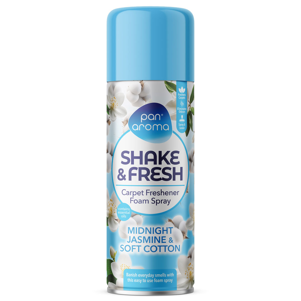 Banish everyday smells with the essential oil infused Pan Aroma Carpet Foam Spray Midnight Jasmine & Soft Cotton. This quick drying formula leaves carpets, rugs and upholstery smelling clean and fresh, with no need to vacuum.