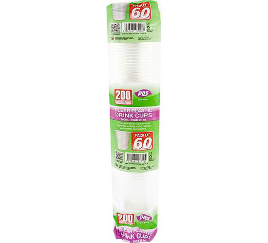 Party Solutions Disposable Clear or White Plastic Drinking Cups 200ml 60 Pack Party Solutions Disposable Clear or White Plastic Drinking Cups 200ml 60 Pack