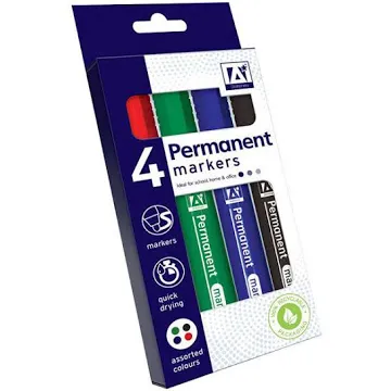 Ideal for writing on flip charts, cardboard boxes and other surfaces, the Permanent Marker Pens are available in four assorted colours. These chunky designs are ideal for inscribing bold text in the office or workplace, and are also useful for school, home and other marking tasks.