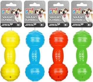 Pets Play Squeaky Ribbed Dumbbell Dog Chew Toy, Various Colours
