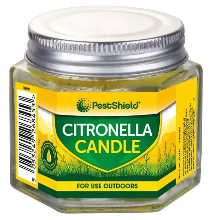 This PestShield Citronella Candle provides a natural and effective way to prevent pests from spoiling outdoor gatherings and excursions. Made with natural citronella oil, this candle provides a long-lasting fragrance that keeps mosquitoes, flies, and flying insects at bay. It's suitable for camping, BBQs, and fishing, and designed for outdoor use. Product SKU ST-151-CH0247 x 1 PestShield Outdoor Citronella Scented Candle - 60g - Yellow.