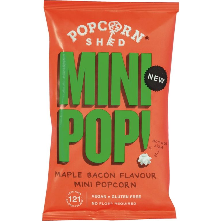 Popcorn Rapeseed Oil Sugar9% Maple bacon seasoning Rice Flour Oak-smoked sugar Salt Natural aroma Yeast Extract Maple Sugar Citric acid (E330) Paprika Extract Fenugreek Pimentos Rapeseed Oil Sea salt