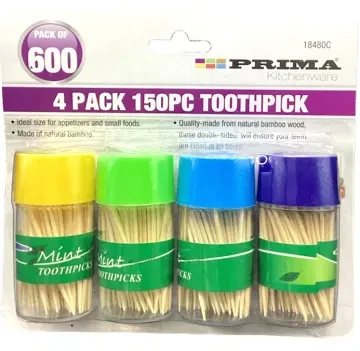 Prima Double Sided Bamboo Toothpicks Canisters Assorted 150pc 4 Pack