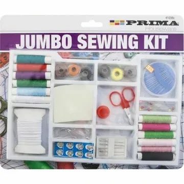 The Prima Jumbo Sewing Kit includes as assortment of various coloured threads, assorted needles, pins, scissors and more.