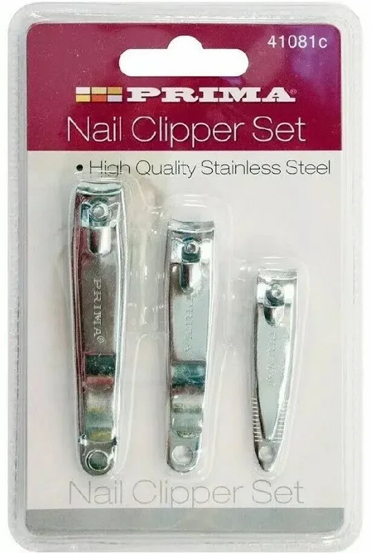 This three piece set includes three Stainless Steel Nail Clippers for maintain fingernails and toenails.
