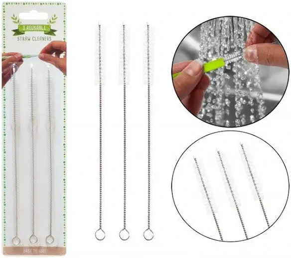 This pack of three straw cleaner brushes are a great addition to any kitchenware range, made from stainless steel with a small brush on one end and a hook for easy hanging and drying, perfect for use on most straws and drinking bottles with built in straws. Use regularly, extends the life of your reusable straw. Mini size, easy placement and storage. Approximate measurements length 19cm.Approximate measurements brush diameter 6mm.