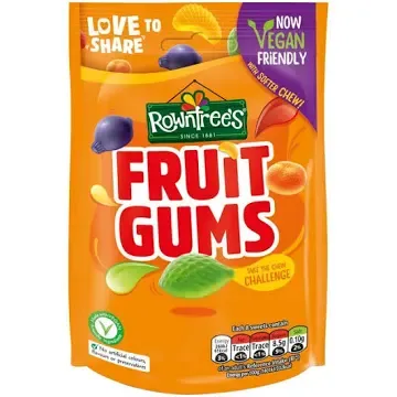 Concentrated Fruit Juice (1%) (Apple, Blackcurrant, Orange, Lime, Strawberry, Lemon), Acidity Regulator (Trisodium Citrate), Flavourings, Colours (Anthocyanins, Copper Complexes of Chlorophyllins, Beta-Carotene, Curcumin), Glazing Agent (Carnauba Wax)