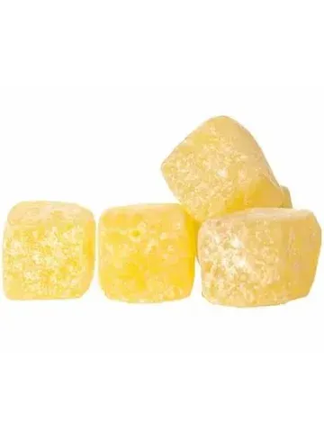 Sugar, Glucose Syrup, Acid: Citric Acid, Palm Oil, Flavouring, Colour: E102; Emulsifier Sunflower Lecithin.