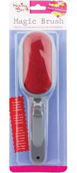 Sewing Box Fabric Magic Brush removes lint, dust and hair from all soft furnishings throughout the home. Brush in the direction of the arrow on the brush head.