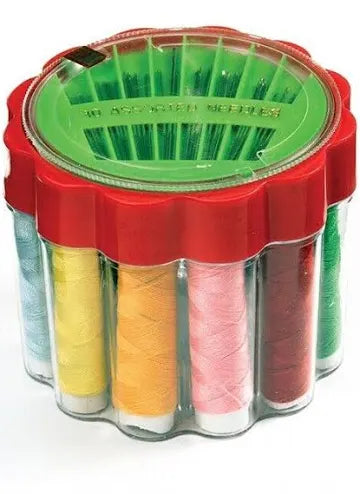40pc Sewing kit complete with 12 reels of cotton, 20 needles with compact case, 2 buttons, 25inch measuring tape, scissors, thimble, safety pin & needle threader.Sewing Kit In Drum