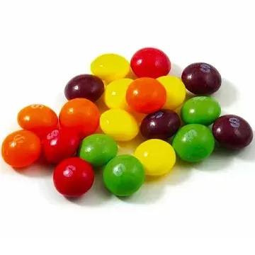 Sugar, Glucose Syrup, Palm Fat, Acids Citric Acid, Malic Acid, Dextrin, Maltodextrin, Flavourings, Modified Starch, Colours E162, E163, E170, E160a, E100, E132, E133, Acidity Regulator Trisodium Citrate, Glazing Agent Carnauba Wax.