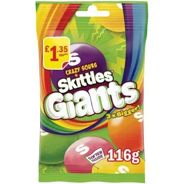 Skittles Giants Vegan Chewy Sour Sweets Fruit Flavoured Treat Bag 14 x 116g