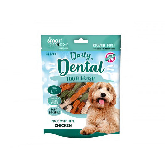 Smart Choice Chicken Dental Toothbrush Dog Treats 130g x 22 Pack x 12