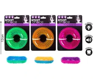 Smart Choice Flashing Squeaky Rubber Spiky Ring Dog Toy, Various Colours