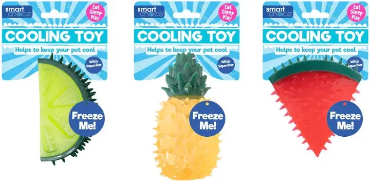 This smart choice watermelon shaped cooling toy, is a great way to keep your dogs cool in the hot weather, also a great way to keep your dog busy by mentally stimulating the dogs brain, and also preventing boredom. Simply submerge your cooling toy in water or jazz up a fruit puree and fill, and simply freeze and give to your pooch on the floor for hours of fun. Can also be used a squeeker toy on its own. BENEFITS Great for keeping your dog cool during hot weather. Great for teething puppies Provides mental stimulation Helps to maintain dental hygiene Boredom buster